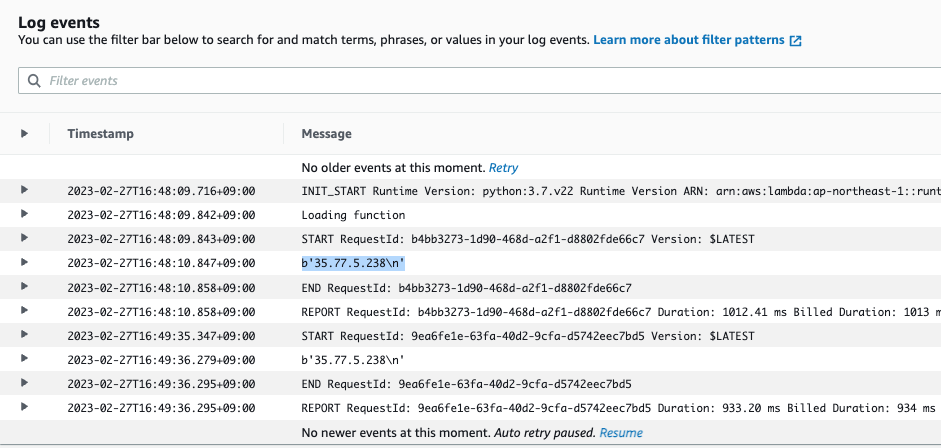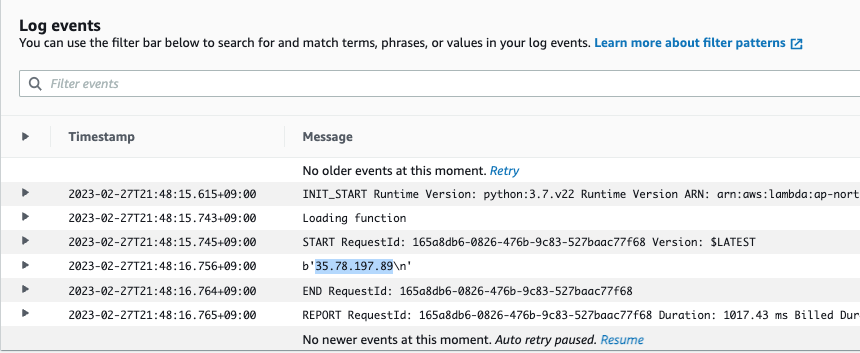 아래 사진에서 확인할 수 있듯이 해당 람다의 IP를 확인할 수 있다.